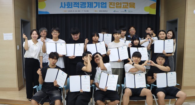 이번 교육은 사회적 경제에 대한 이해를 높이고 청소년의 진로 탐색을 지원하기 위해 마련된 프로그램으로, 6월24일부터 7월15일까지 총 5회에 걸쳐 진행됐으며, 최종 18명의 수료생을 배출했다.