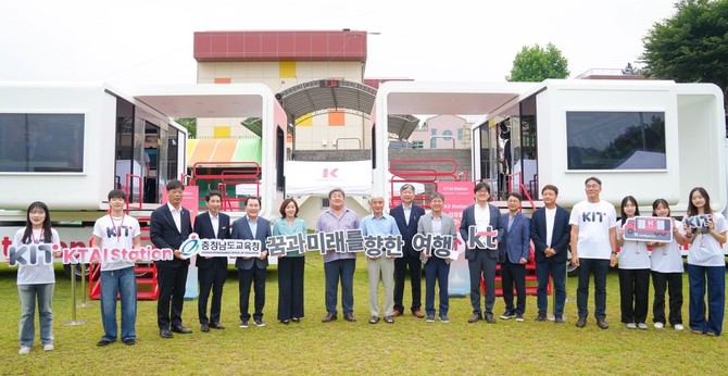 [프라임경제] 충남교육청(교육감 김지철)과 KT(대표이사 김영섭)는 도서산간 및 농어촌 지역 청소년들의 인공지능(AI) 교육 및 체험 기회 확산을 위해 이동형 인공지능(AI) 체험 공간인 '케이티 인공지능 스테이션(KT AI Station)' 시연회 및 '찾아가는 킷 데이(KIT-DAY)'를 16일 부여 석성중학교에서 개최했다.