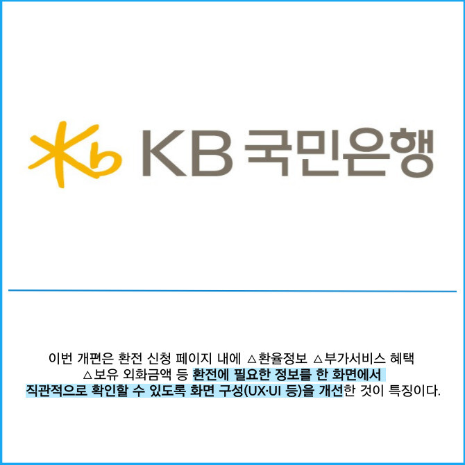 [카드] 국민은행, KB스타뱅킹 환전서비스 전면 개편