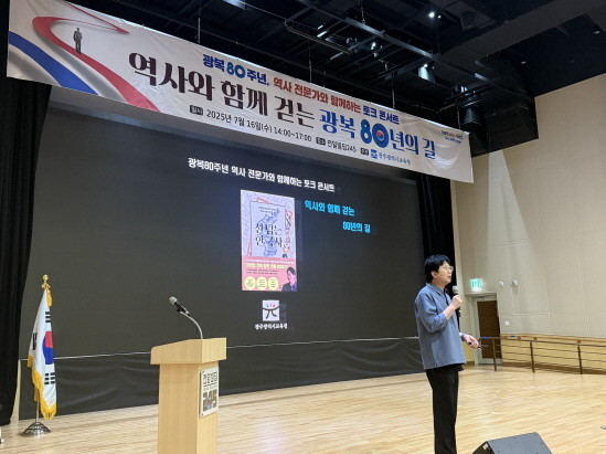 이날 콘서트는 정명섭 작가가 진행을 맡고 박 작가가 '역사와 함께 걷는 광복80주년의 길'을 주제로 강연을 하고, 이어 청중들과 대화를 나누는 순으로 진행됐다.