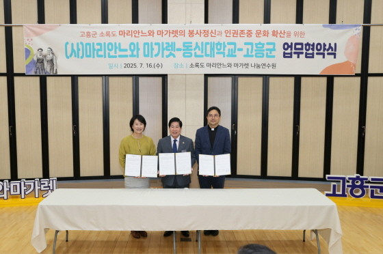 [프라임경제] 전남 고흥군(군수 공영민)은 16일 소록도 마리안느·마가렛 나눔연수원에서 동신대학교, (사)마리안느와 마가렛과 함께 마리안느와 마가렛 두 간호사에 대한 선양사업 협력 및 나눔연수원 이용 활성화를 위한 3자 간 업무협약을 체결했다.