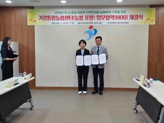 포항시농업기술센터와 포항교육지원청은 16일 포항교육지원청 세미나실에서 '온종일 돌봄 체계 구축을 위한 업무협약'을 체결했다.