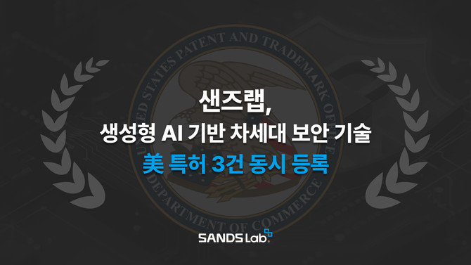 [프라임경제] 인공지능(AI) 보안 전문 기업 샌즈랩(411080)이 자사가 개발한 보안 기술 3건에 대해 미국 특허청(USPTO)으로부터 특허 등록이 완료됐다고 17일 밝혔다.