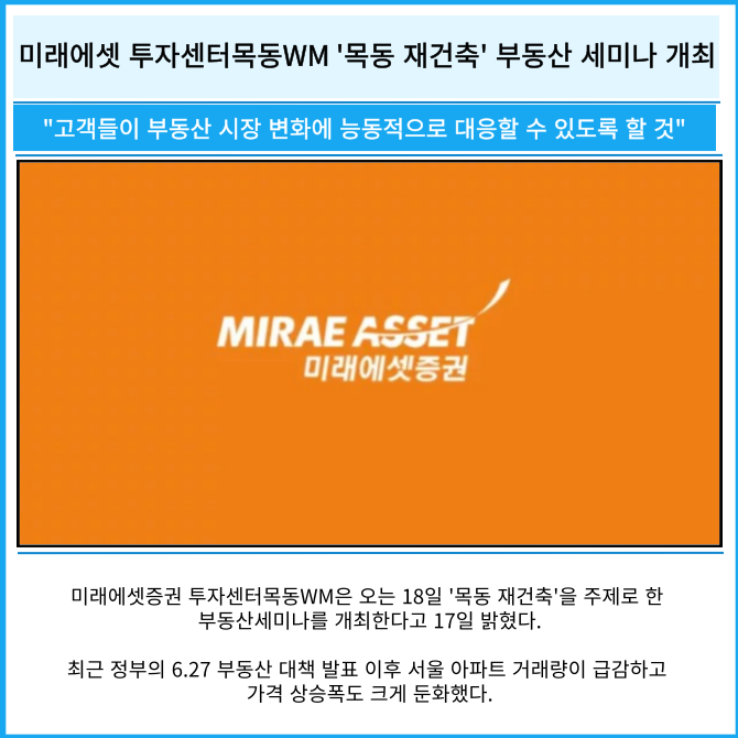 [카드] 미래에셋 투자센터목동WM '목동 재건축' 부동산 세미나 개최