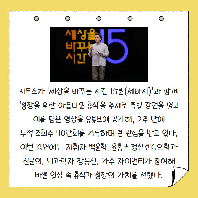 [카드] 시몬스, 세바시 강연 유튜브 화제…조회수 70만회