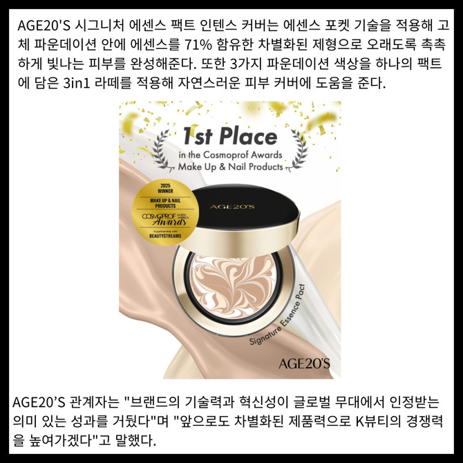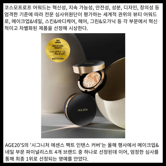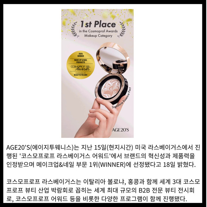 [카드] AGE20'S, '코스모프로프 라스베이거스 어워드' 메이크업·네일 부문 1위 선정