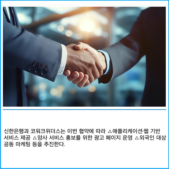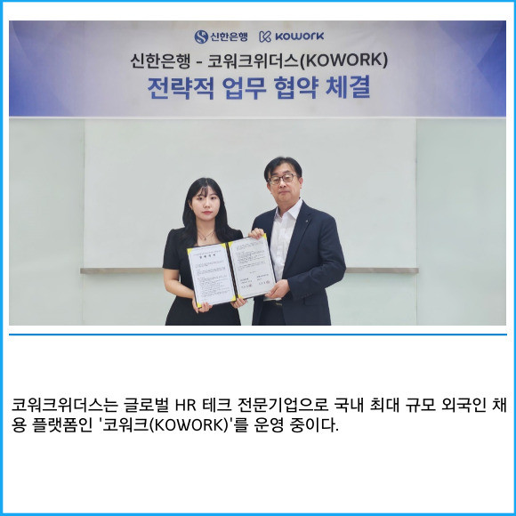 [프라임경제] 신한은행이 서울시 중구 소재 본점에서 코워크위더스와 외국인 대상 금융 서비스 확대를 위한 업무협약을 체결했다고 18일 밝혔다.