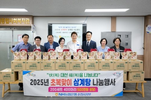 주철호 농협은행 순천시지부장은 "복날을 맞아 더위에 지친 어르신들께 건강한 한 끼를 전하고 싶었다"며 "농협은 앞으로도 지역사회와 함께하는 다양한 사회공헌 활동을 지속해 나가겠다"고 전했다.