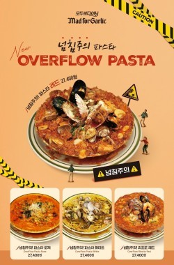 지난 1일 첫 선을 보인 매드포갈릭의 '넘침주의(Overflow)' 시리즈는 접시 위로 넘칠 듯 푸짐한 양과 진한 맛을 강조한 여름맞이 신메뉴로 베이스 소스에 따라 레드, 로제, 화이트 등 파스타 3종과 신선한 해산물을 가득 넣은 매콤한 리조또 1종 등 총 4가지 메뉴로 구성돼 있다.