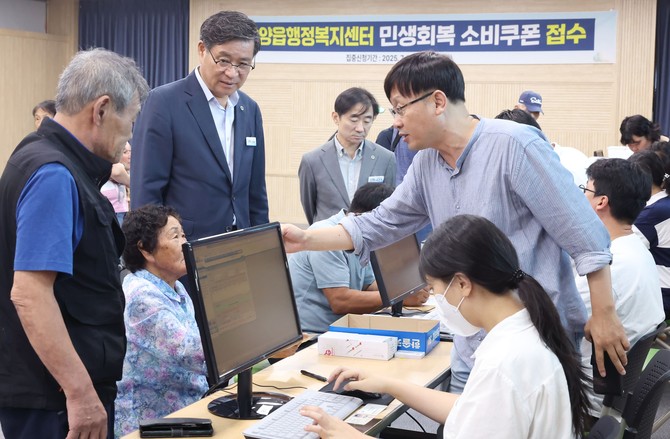 진 군수는 신청 접수를 지원 중인 읍사무소 직원들에게도 "주민 한분 한분이 빠짐없이 혜택을 받을 수 있도록 끝까지 책임감을 갖고 꼼꼼히 안내해 달라"고 당부했다.