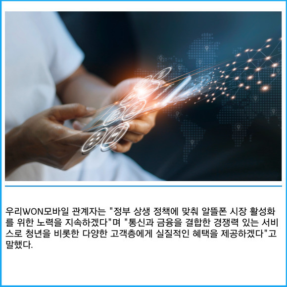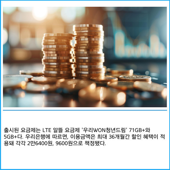[프라임경제] 우리은행이 자사 알뜰폰 브랜드 '우리WON모바일'에 청년층 통신비 부담을 줄이기 위한 요금제 2종을 출시했다고 21일 밝혔다.