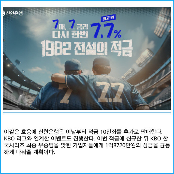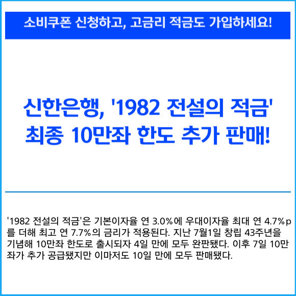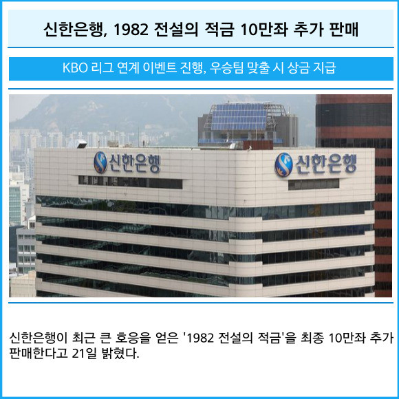 [카드] 신한은행, 1982 전설의 적금 10만좌 추가 판매