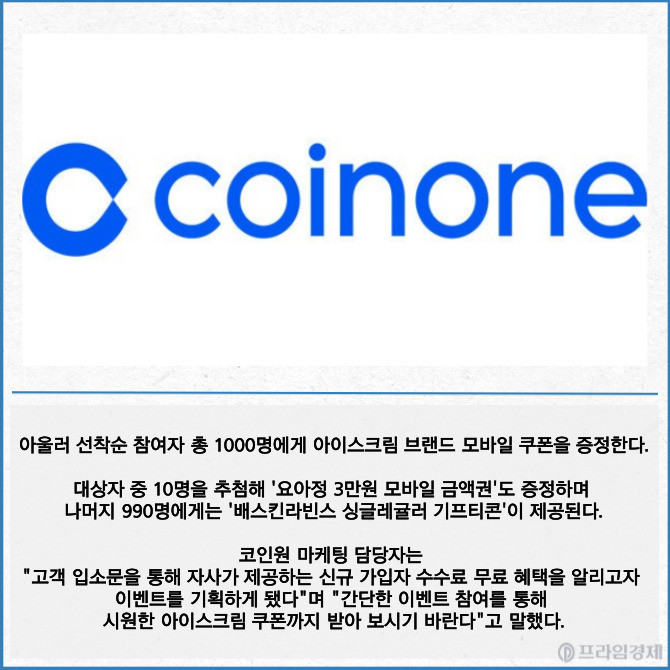 [카드] 코인원 '수수료 무료 소문내기' 이벤트