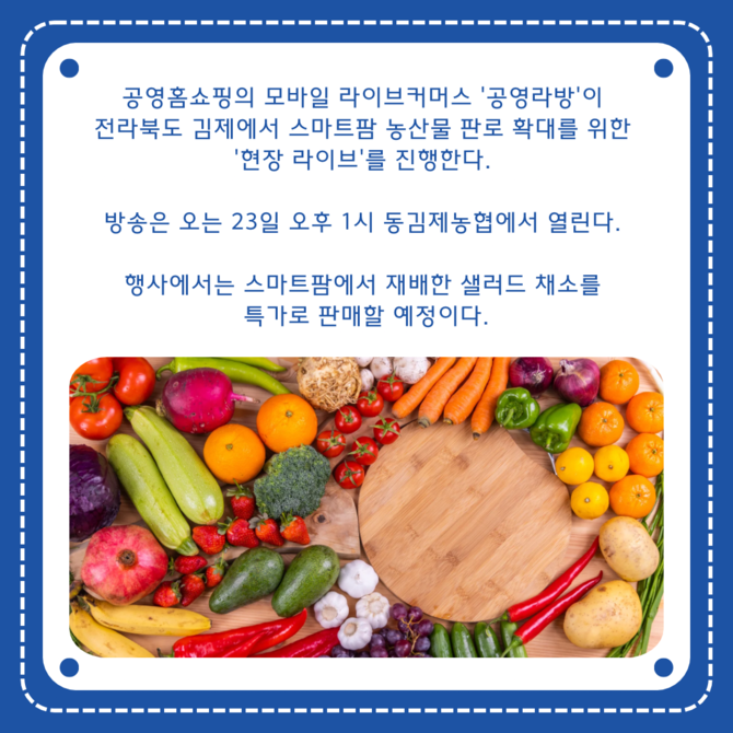 [프라임경제] 공영홈쇼핑의 모바일 라이브커머스 '공영라방'이 전라북도 김제에서 스마트팜 농산물 판로 확대를 위한 '현장 라이브'를 진행한다.