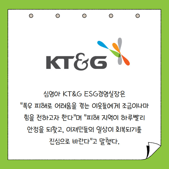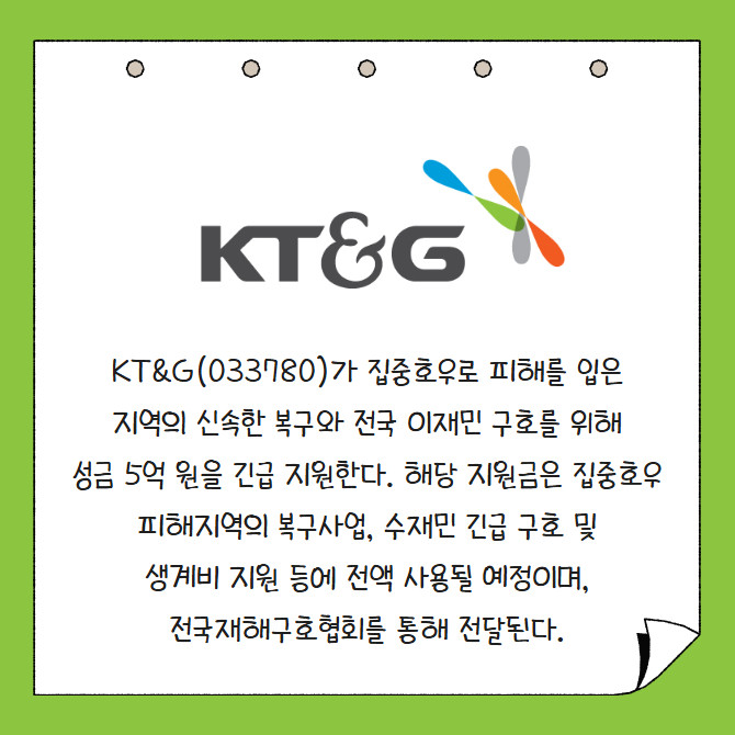 [카드] KT&G, 집중호우 피해 복구 위해 성금 5억원 지원