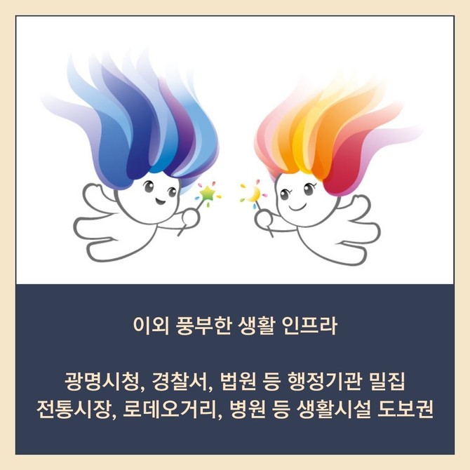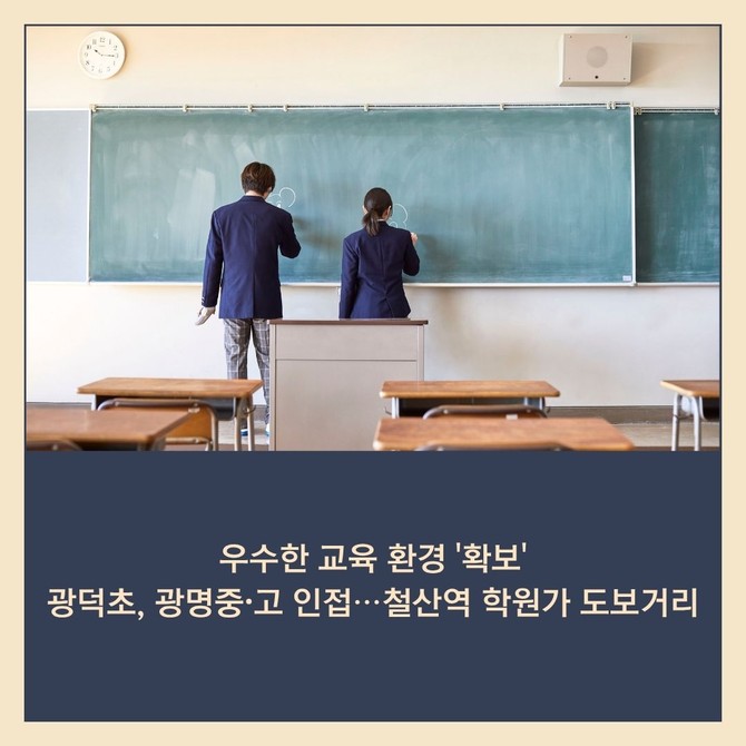 지하철 7호선 철산역 도보권 입지에 수영장, 스카이라운지 등 고급 커뮤니티를 갖춰 광명뉴타운 랜드마크 단지로 주목받고 있다.