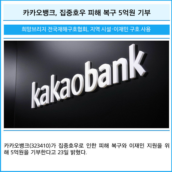 [카드] 카카오뱅크, 집중호우 피해 복구 5억원 기부