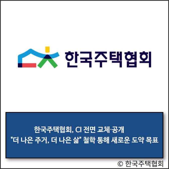 협회에 따르면 이번에 공개된 CI는 집의 형태와 사람의 형상을 결합해 상호간의 유기적 관계를 직관적으로 표현했으며, 협회가 지향하는 "더 나은 주거, 더 나은 삶"이라는 비전을 전달하는 데 그 의미를 두고 있다.