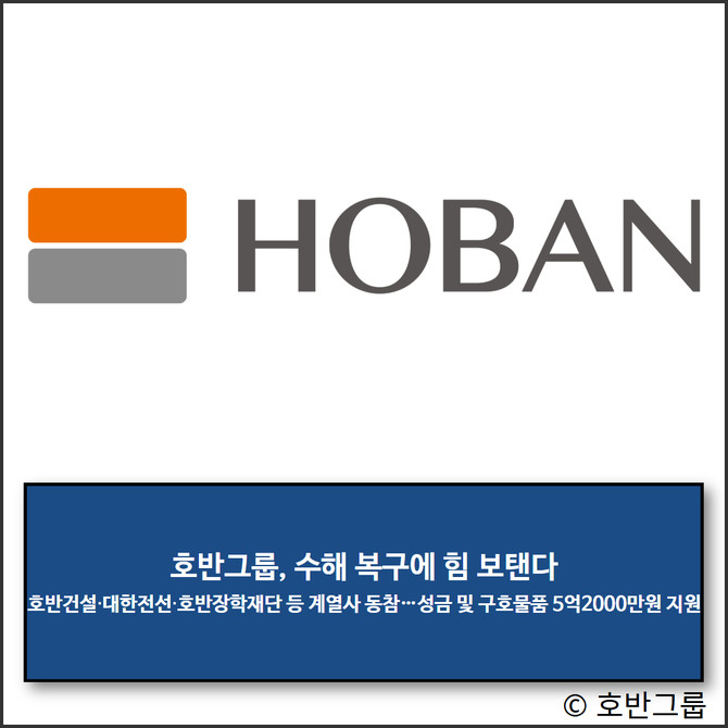 이와 함께 호반그룹은 임직원 봉사단 '호반사랑나눔이'를 중심으로 피해지역 복구를 위한 봉사활동도 적극 전개할 예정이다.
