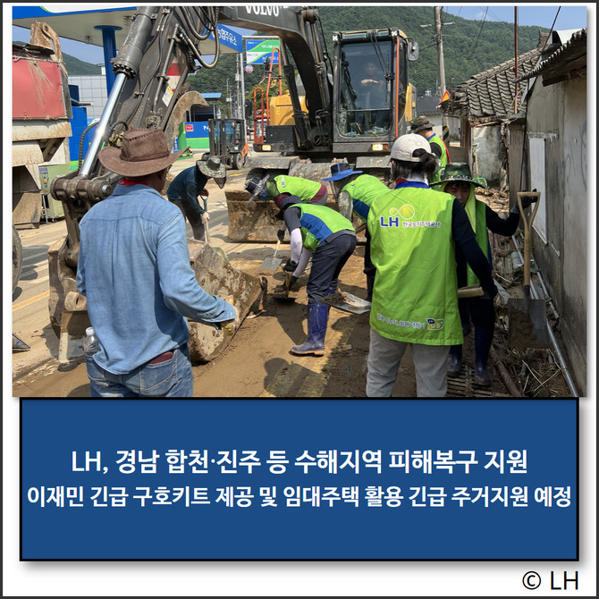 한국토지주택공사(LH)가 지난 16일부터 이어진 집중호우로 인한 침수 등 피해가 발생한 경남 합천군과 진주시 수곡면 수해복구 봉사활동을 실시했다.
