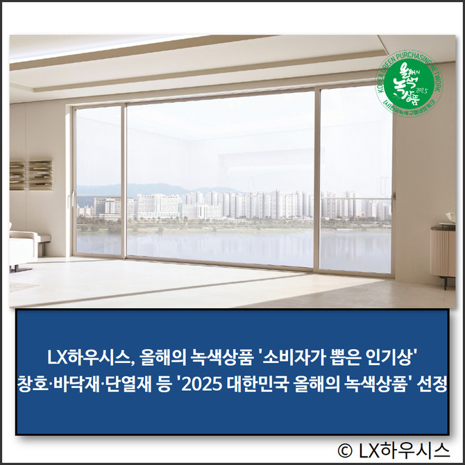 LX하우시스(108670)의 'LX Z:IN(LX지인) 창호 뷰프레임'이 '2025 대한민국 올해의 녹색상품' 선정과 '소비자가 뽑은 인기상'을 수상했다.