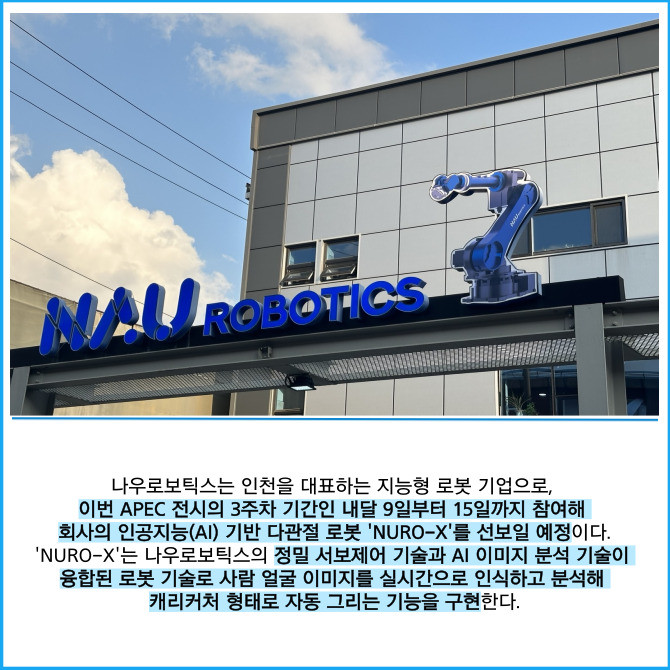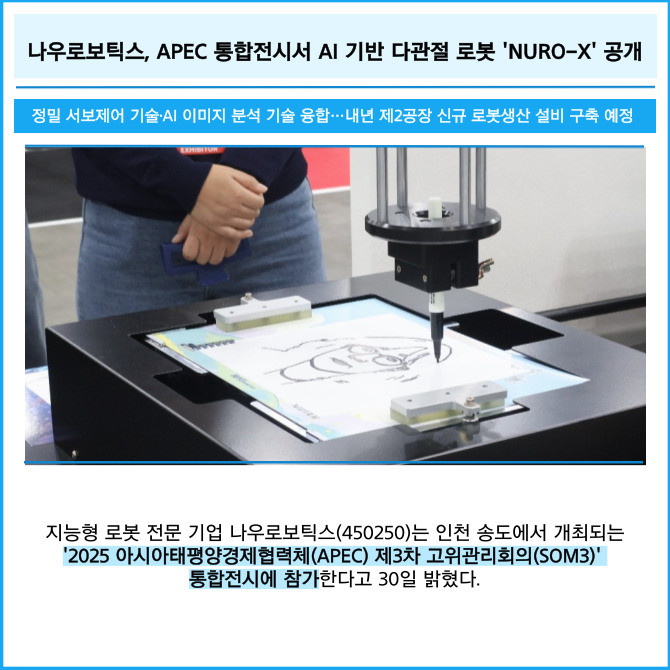 [프라임경제] 지능형 로봇 전문 기업 나우로보틱스(450250)는 인천 송도에서 개최되는 '2025 아시아태평양경제협력체(APEC) 제3차 고위관리회의(SOM3)' 통합전시에 참가한다고 30일 밝혔다.
