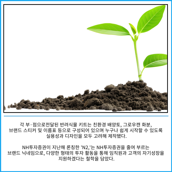 이날 오전 윤병운 NH투자증권 사장은 여의도 본사에서 전사 임직원을 대상으로 반려식물 키우기 키트(KIT)를 전달했다.