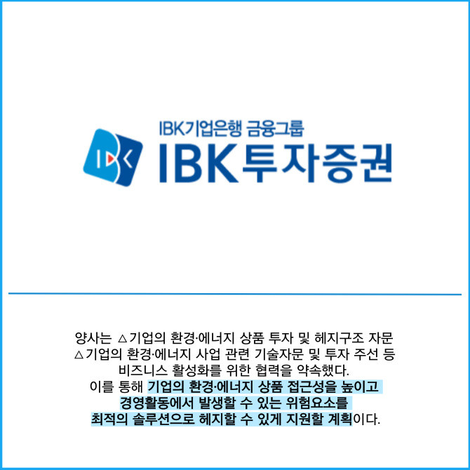 [프라임경제] IBK투자증권은 지난 30일 NH선물과 '환경·에너지 섹터의 지속 가능한 시너지 창출을 위한 전략적 업무협약(MOU)'을 체결했다고 31일 밝혔다.