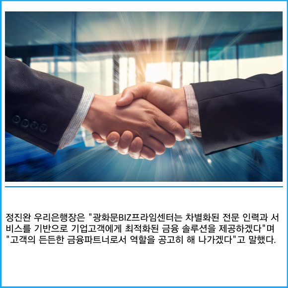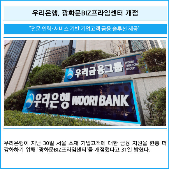 [프라임경제] 우리은행이 지난 30일 서울 소재 기업고객에 대한 금융 지원을 한층 더 강화하기 위해 '광화문BIZ프라임센터'를 개점했다고 31일 밝혔다.