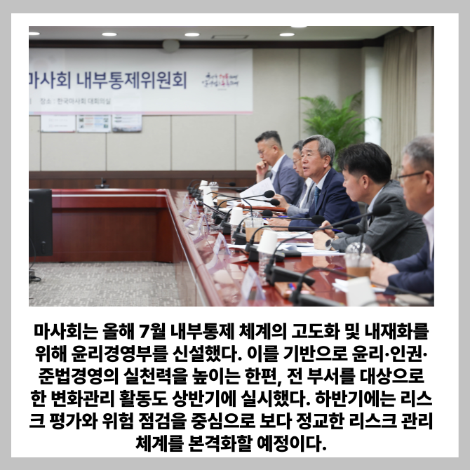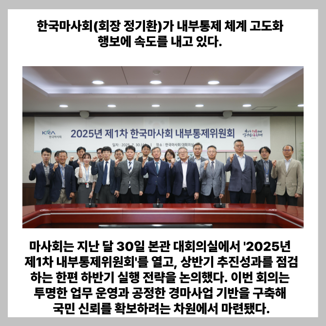 [프라임경제] 한국마사회(회장 정기환)가 내부통제 체계 고도화를 위한 행보에 속도를 내고 있다.