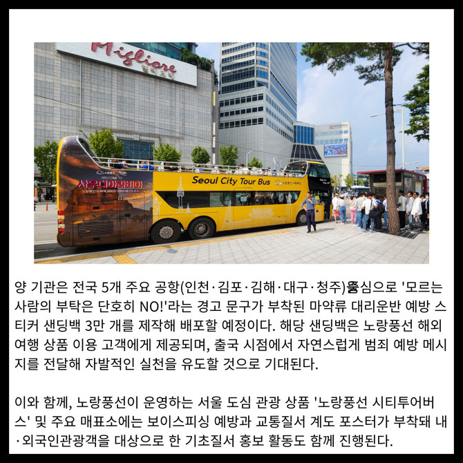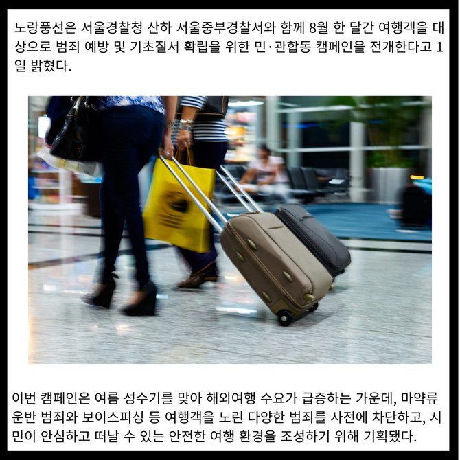 [프라임경제] 노랑풍선은 서울경찰청 산하 서울중부경찰서와 함께 8월 한 달간 여행객을 대상으로 범죄 예방 및 기초질서 확립을 위한 민·관 합동 캠페인을 전개한다고 1일 밝혔다.