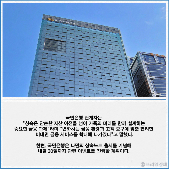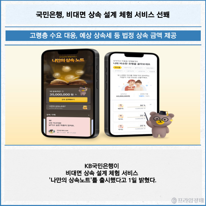 [프라임경제] KB국민은행이 비대면 상속 설계 체험 서비스 '나만의 상속노트'를 출시했다고 1일 밝혔다.