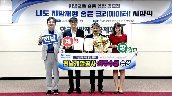[프라임경제] 전남개발공사가 한국지방재정공제회 주최 '지방교육 숏폼 영상 공모전'에서 최우수상을 수상하며 전국 1위의 영예를 안았다고 4일 밝혔다.