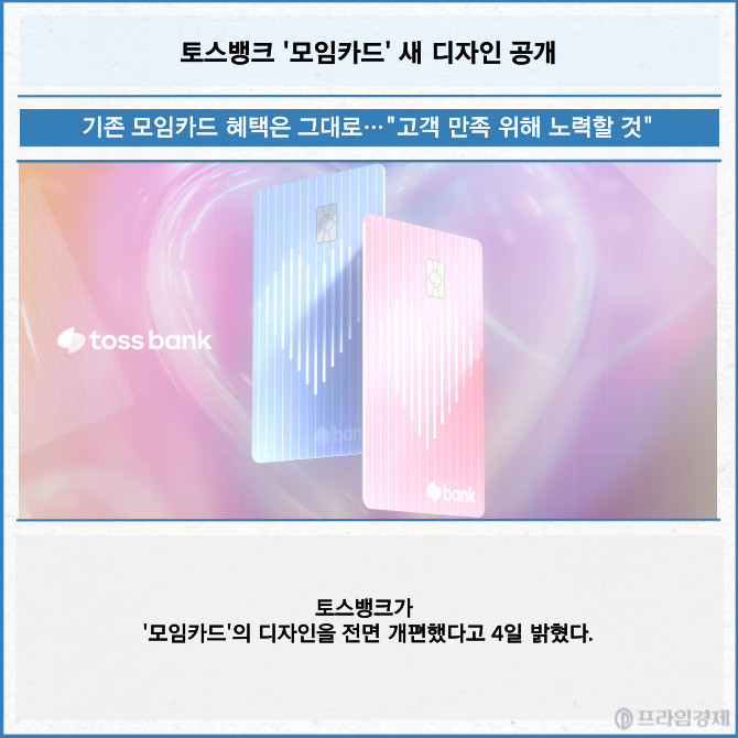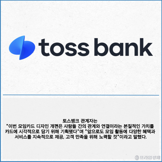 [프라임경제] 토스뱅크가 '모임카드'의 디자인을 전면 개편했다고 4일 밝혔다.
