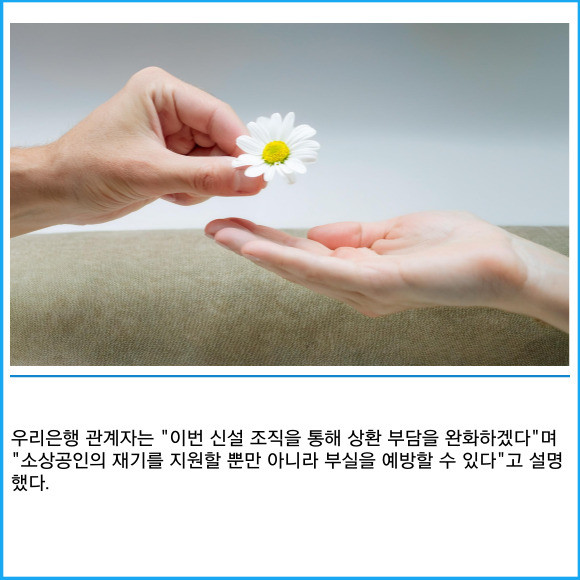 [프라임경제] 우리은행이 경기침체로 어려움을 겪고 있는 소상공인과 취약계층에 대한 재기 지원을 강화하기 위해 채무조정 전담조직을 신설했다고 4일 밝혔다.