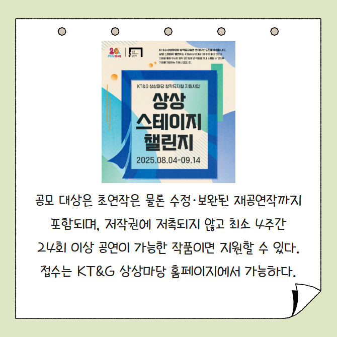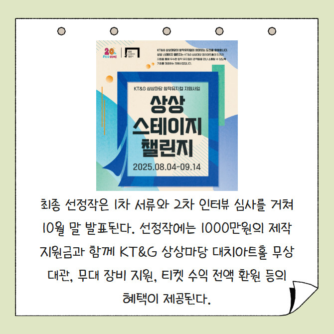 [카드] KT&G 상상마당, 창작 뮤지컬 지원 '상상 스테이지 챌린지' 공모