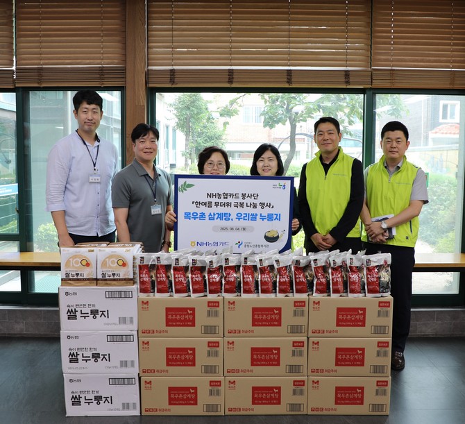 이날 이민경 사장과 NH농협카드 봉사단은 복지관을 찾아 어르신들의 건강한 여름나기를 위한 삼계탕과 우리쌀 누룽지 등을 전달했다. 후원물품은 임직원의 자발적인 참여로 이뤄진 NH농협카드 봉사단의 적립기금으로 마련됐다.