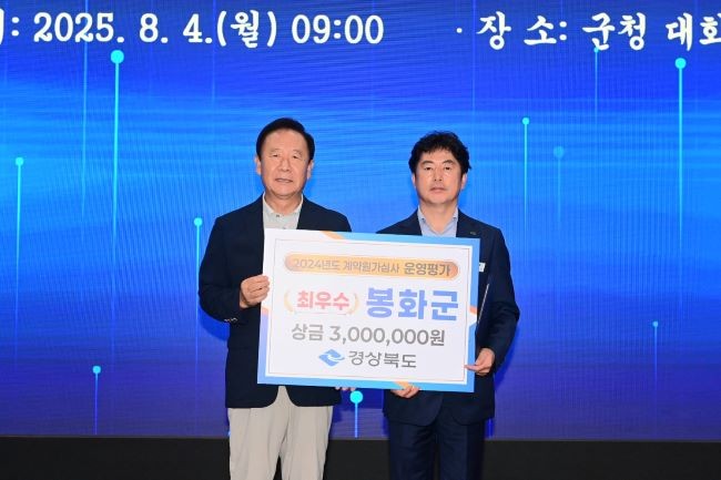 봉화군은 경상북도가 실시한 '2024년 계약원가심사 운영평가'에서 '군부 최우수기관'에 선정되는 쾌거를 이뤘다.