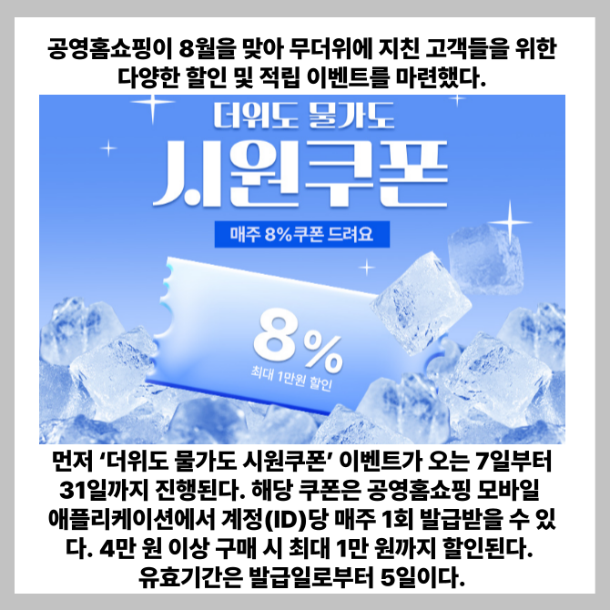 [카드] 공영홈쇼핑, 8월 맞이 여름 이벤트 진행