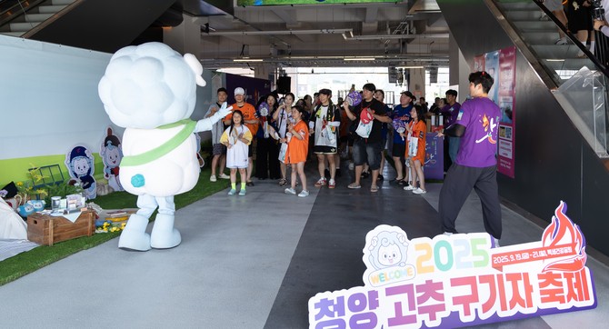 경기장 입구 중앙홀에 설치된 대형 홍보부스는 △축제홍보존 △관광존 △농특산물존 △이벤트존 △기부제존 등 5개 구역으로 구성돼 청양이 캐릭터와 사진찍기, 경품이벤트 등 다양한 프로그램으로 관람객들의 큰 호응을 얻었다. 부스를 찾은 팬들에게는 청양고추구기자 홍보 부채와 특산물 샘플, 소정의 기념품을 제공해 지역을 알렸다.