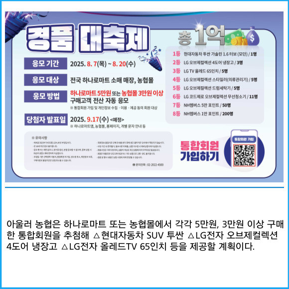 하나로마트·농협몰 구매 회원 추첨, 투싼·냉장고 등 경품 제공