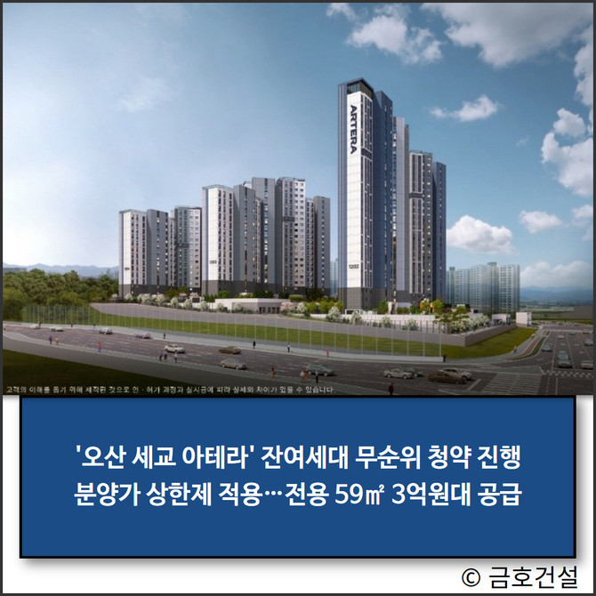 금호건설(002990)이 경기도 오산세교2지구 A12블록에 공급 중인 '오산 세교 아테라'가 오는 11일부터 일부 잔여 세대를 대상으로 무순위 청약을 진행한다.