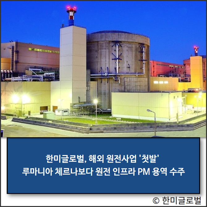6일 한미글로벌은 루마니아의 체르나보다 원자력발전소 1호기 설비개선 인프라 건설사업의 PM 용역을 수주했다고 밝혔다. 지난해 12월 한국수력원자력(한수원)이 루마니아 원자력공사(SNN)와 체르나보다 1호기 설비개선사업의 계약을 체결한 것에 이어 한미글로벌은 한수원으로부터 이 프로젝트의 인프라 건설 부문에 대한 건설사업관리(PM)용역을 수주한 것이다.