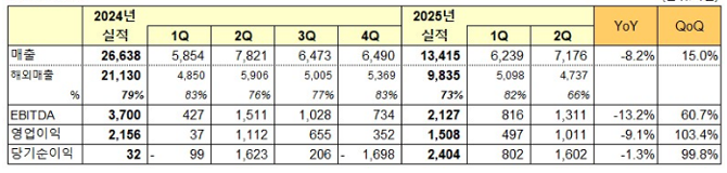 해외 매출은 4737억원으로 2분기 전체 매출 대비 66%를 기록해 전 분기 대비 7.1%, 전년 동기 대비 19.8% 감소했지만 이는 한국 지역 매출 성장에 따른 상대적 영향이다.