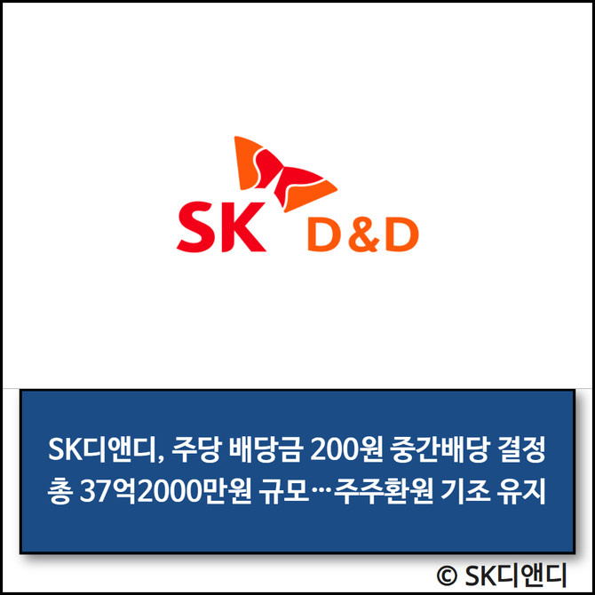 이번 중간배당은 지난해 상반기와 동일한 수준으로, 총 배당금 규모는 약 37억2000만원이다. SK디앤디는 부동산 시장의 어려운 여건 속에서도 주주환원 가치를 지속하겠다는 경영 방침을 이번 결정에 담았다고 설명했다.