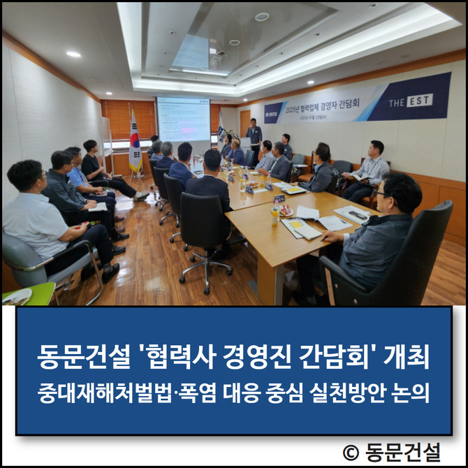 동문건설은 최근 주요 협력사 대표들과 함께 '협력 회사 경영진 간담회'를 열고, 산업안전 대응과 폭염 대비 안전관리 강화를 위한 실질적인 방안을 논의했다.