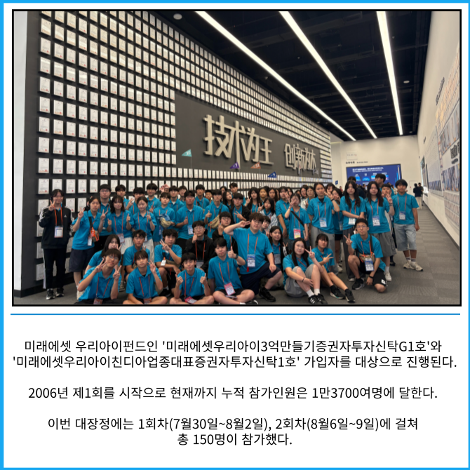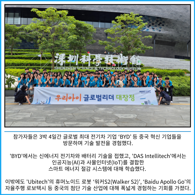 [프라임경제] 미래에셋자산운용은 중국 선전에서 '제37회 미래에셋 우리아이 글로벌리더 대장정'을 진행했다고 8일 밝혔다.