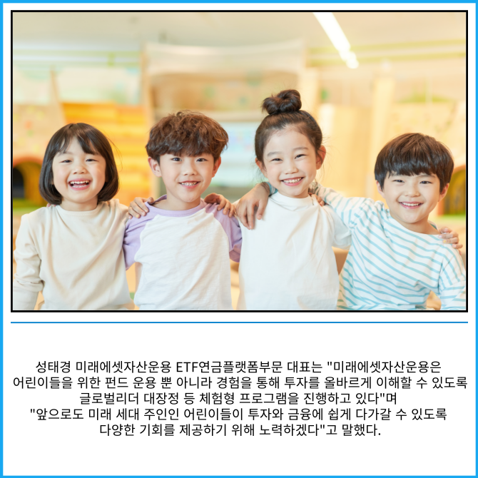 '미래에셋 우리아이 글로벌리더 대장정'은 글로벌 기업 방문 등을 통해 어린이들이 글로벌 리더로서의 기초 소양을 배울 수 있는 경제교육 프로그램이다.