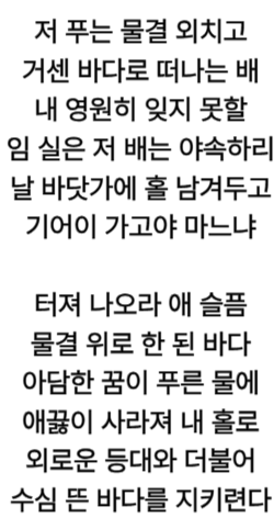 그림이 그려질 듯한 이 장면에서 시가 연상되었고, 이어진 술자리에서 술집의 시멘트벽지를 뜯어 쓰여진 시가 '떠나가는 배'다.