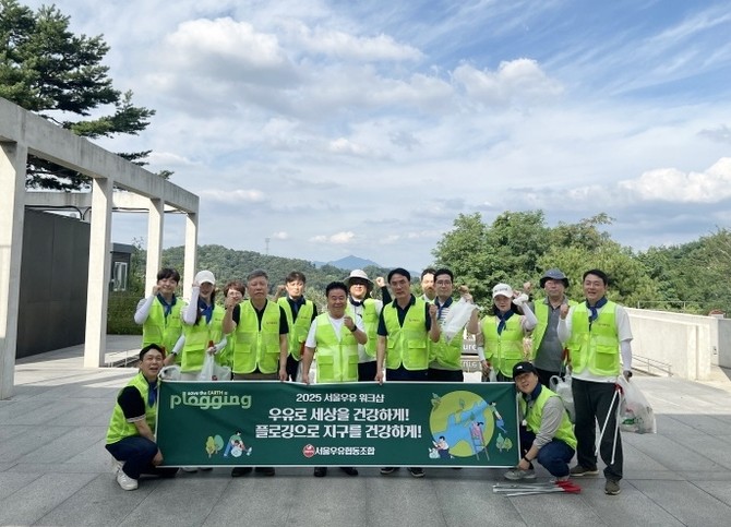 이번 플로깅 봉사활동에는 서울우유협동조합 문진섭 조합장, 최경천 상임이사를 비롯해 본사 임직원들이 함께했다.